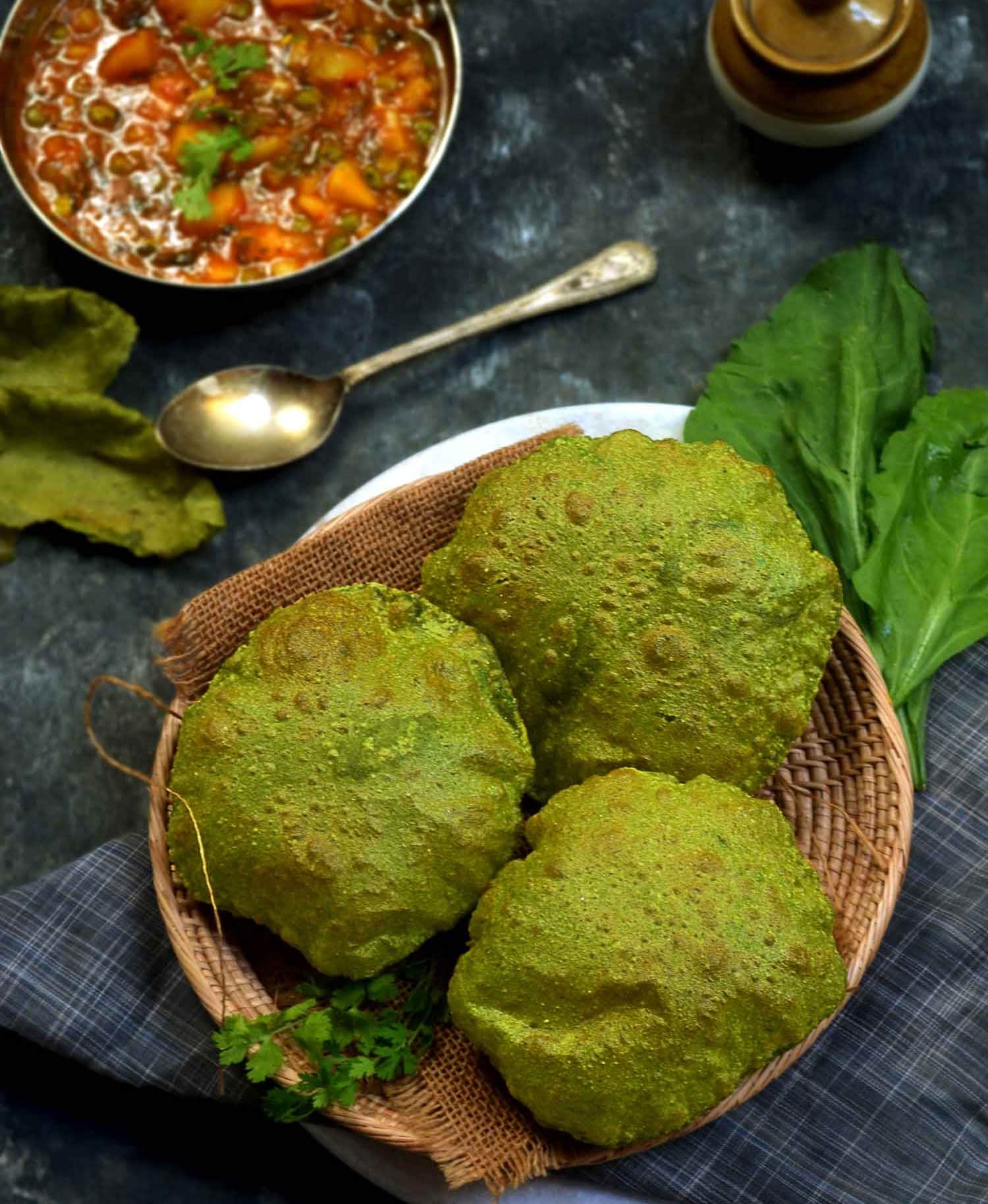 Madhya Pradesh offers a plethora of nutritious food options that are not only delicious but also a fantastic source of nutrients. Palak puri is a popular breakfast dish that pairs well with raita and aloo sabzi for a satisfying lunch. To make the best-tasting palak puri, wheat dough is combined with ground spinach leaves and a few spices.