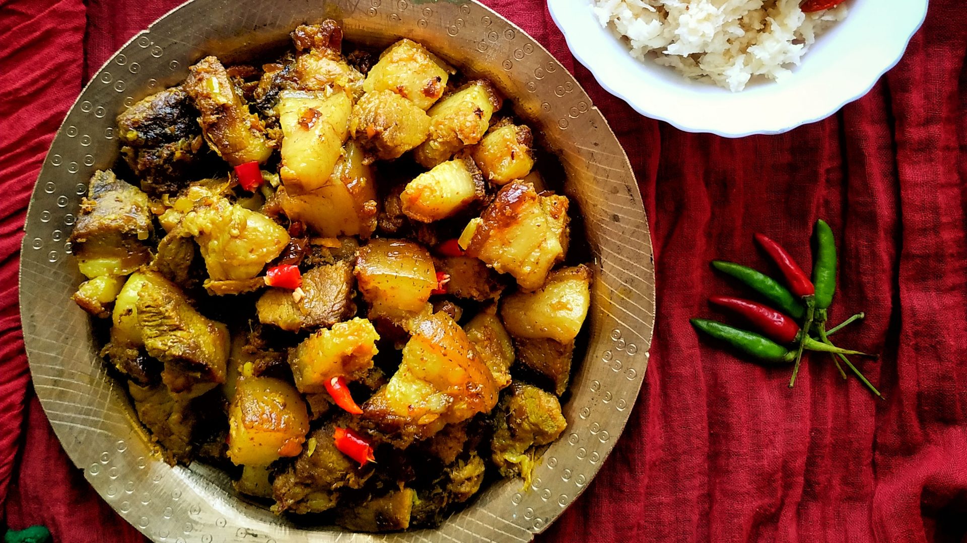 Bamboo tubes are one of the many methods Naga people use to cook their meals. A small amount of spice and the fish are placed inside the tube and left to smoke over a fire. The fish are ready to eat once they have been fried. You’ll detect a subtle bamboo flavour as you eat this dish—it’s an interesting and delightful flavour.