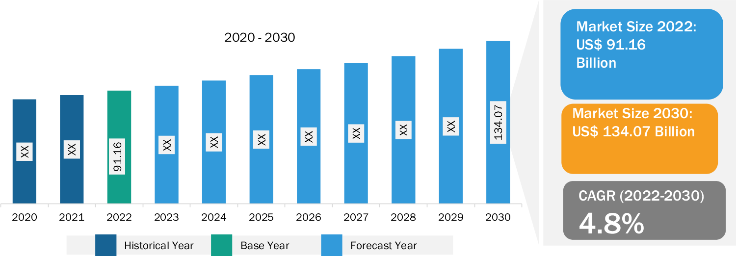 Aircraft MRO Market Growth: The aircraft MRO market was valued at US$ 91.16 billion in 2022 and is projected to reach US$ 134.07 billion by 2030; it is expected to register a CAGR of 4.8% during the forecast period.The Global Aircraft MRO Market is observing substantial growth and is expected to maintain its upward trajectory in the foreseeable future. This growth can be accredited to numerous factors. One of the prime factors is the retrofitting of older aircraft fleet. Retrofitting, which implies to the installation or addition of newer technologies on older aircraft fleets, helps increase passenger comfort and safety and facilitates the airlines in maintaining their older fleets. Continuous advancements in aircraft technologies are resulting in the upgrade of MRO capabilities. MRO service providers are constantly seeking updates and procurement of latest technologies in order to service the newer aircraft as well as retrofit the upgraded technologies on the older aircraft fleets. In the current scenario, global commercial airlines are holding on to their older aircraft fleet owing to the drop in fuel prices. This factor is compelling the airlines to opt for MRO activities frequently, which is facilitating the MRO service providers to offer the airlines to retrofit the aircraft fleet with newer technologies. The retrofitting trend is soaring among the MRO service providers. Thus, the integration of advanced and modern technologies into older aircraft fleets is expected to change the aircraft MRO market landscape as well as the face of the aviation industry.