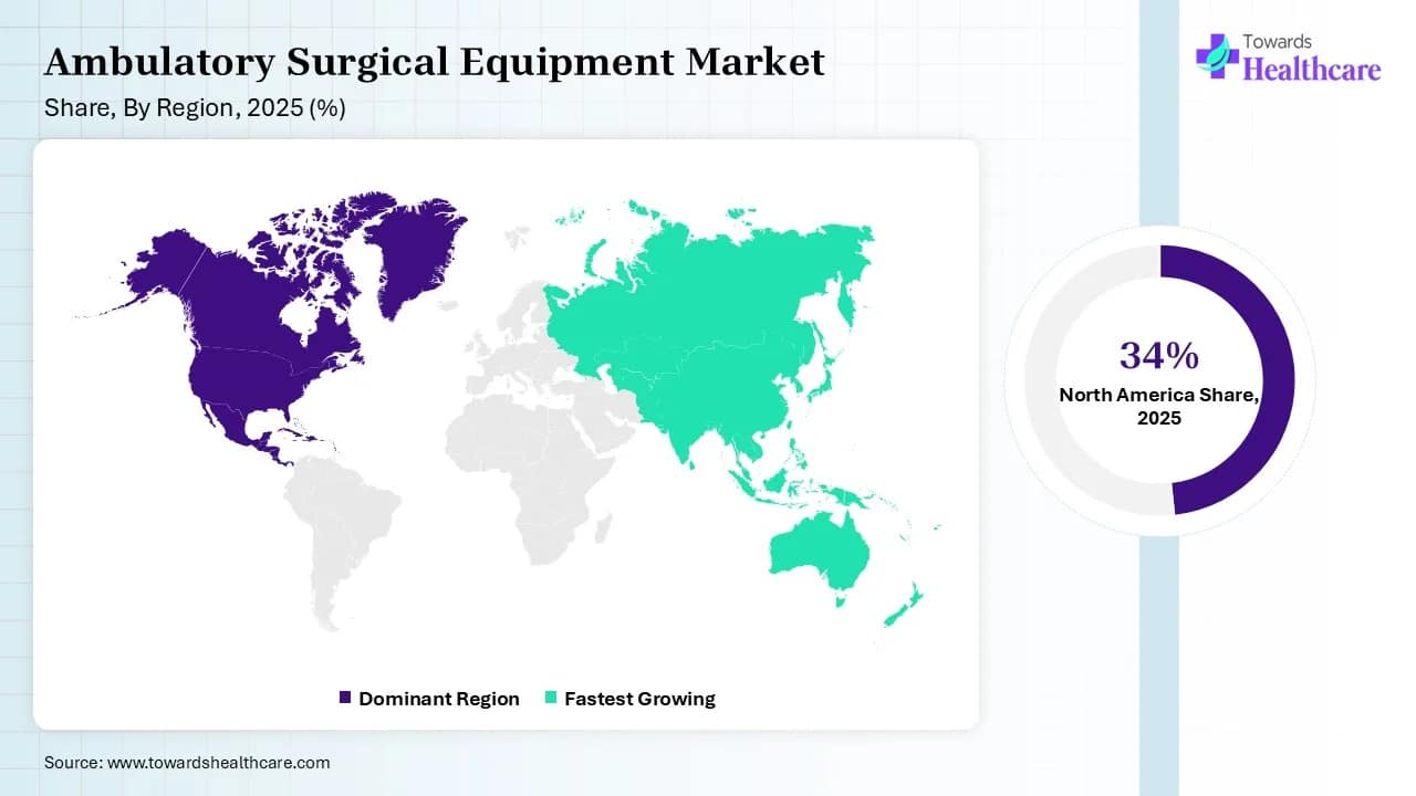 - North America dominated the ambulatory surgical equipment market share by 34% in 2025.