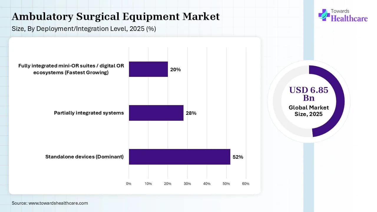 - By deployment/integration level, the standalone devices segment dominated the ambulatory surgical equipment market share by 52% in 2025.