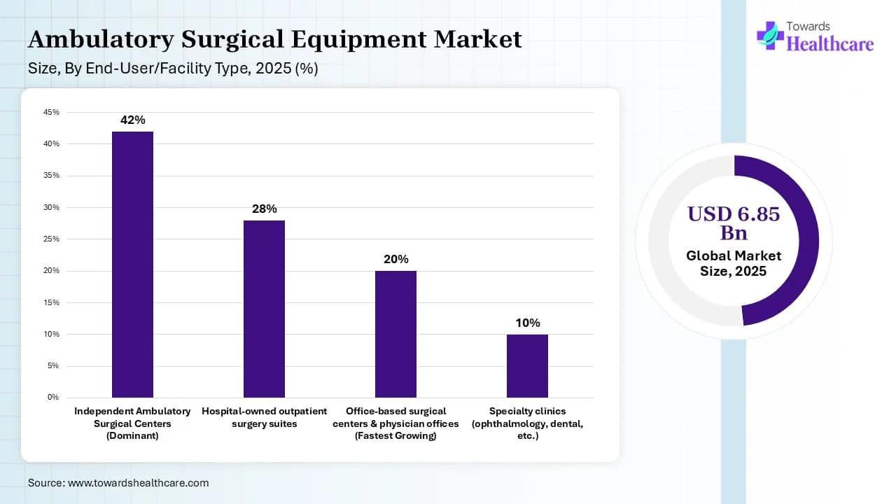 - By end-user/facility type, the independent ambulatory surgical centers segment dominated the market share by 42% in 2025.