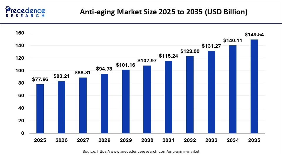 Ottawa, Dec. 12, 2025 (GLOBE NEWSWIRE) — The global anti-aging market size is expected to be worth over USD 149.54 billion by 2035, increasing from USD 83.21 billion in 2026, growing at a strong CAGR of 6.73% between 2026 and 2035. The increasing awareness about personal appearance and the aging population drives the market growth.