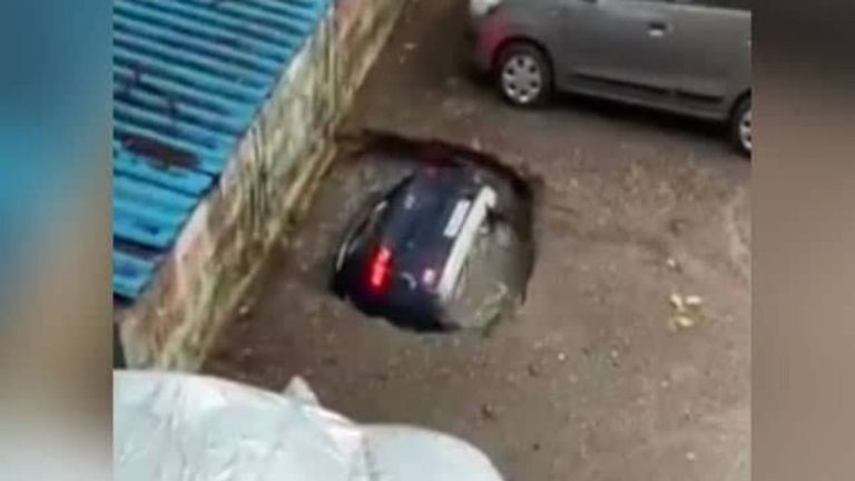 A parked car in Mumbai disappeared within seconds into a sinkhole at a residential complex. Mumbai has been receiving heavy…
