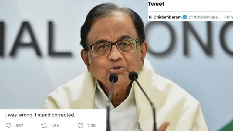 P. Chidamabaram tweets “I was wrong, I stand corrected”