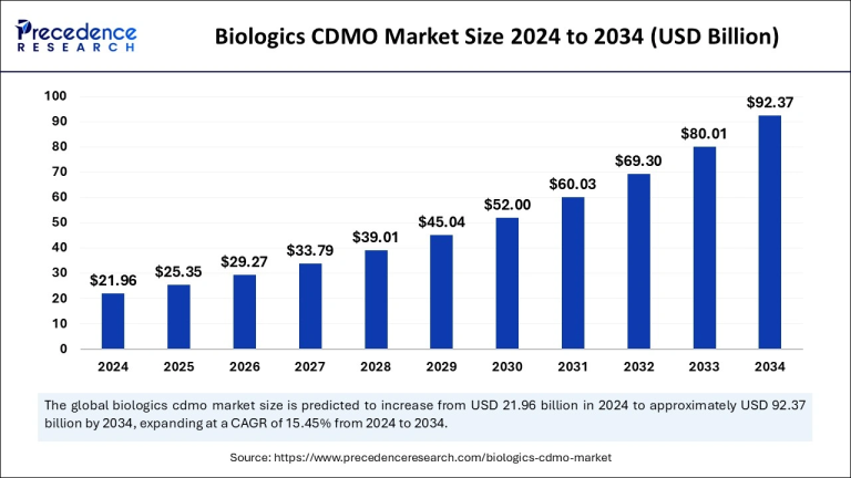 Biologics CDMO Market Size Expected to Hit USD 92.37 Billion by 2034 Fueled by Rising Demand for Monoclonal Antibodies and Biosimilars