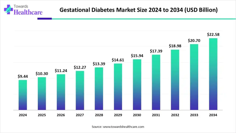 The global gestational diabetes market size was valued at USD 9.44 billion in 2024 and is predicted to hit around…