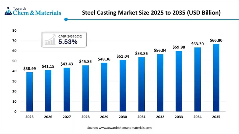 The global steel casting market is projected to grow from USD 38.99 billion in 2025 to USD 66.80billion by 2035,…