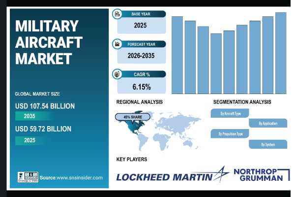 Military Aircraft Market Size Projected to Surpass USD 107.54 Billion by 2035; Driven by Rising Geopolitical Tensions and Fleet Modernization – SNS Insider