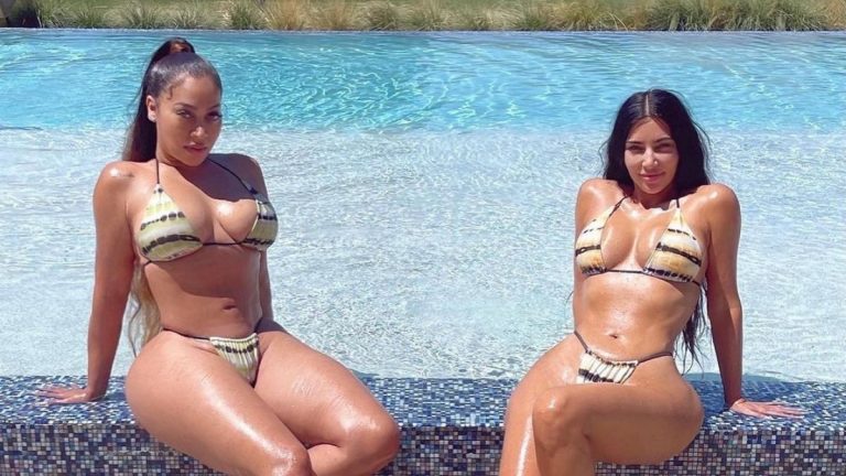 Los Angeles, April 29 (IANS) Reality TV star Kim Kardashian flaunts a golden tan along friend Lala Anthony in a new…