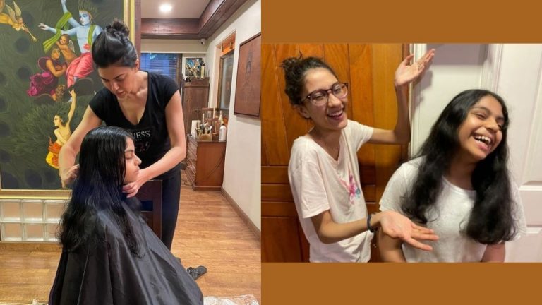 Actress, Sushmita Sen turned into a hairdresser for her daughter and shared pictures of their busy weekend on social media.
