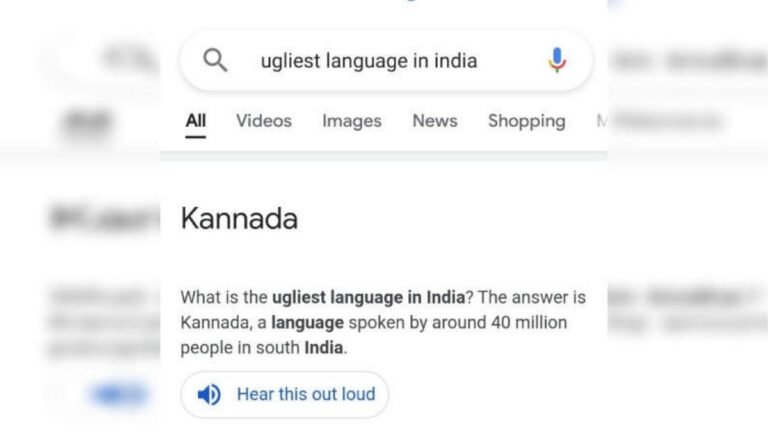 During a search on Google for “India’s ugliest language”, Google’s answer to the question was “Kannada,” a language spoken by…