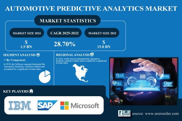 Austin, Sept. 22, 2025 (GLOBE NEWSWIRE) — The automotive predictive analytics market size was valued at USD 1.9 billion in 2024 and is expected to reach USD 15.0 billion by 2032, growing at a CAGR of 28.70% during 2025-2032.