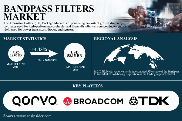 According to the SNS Insider,“The Bandpass Filters Market was valued at USD 18.06 billion in 2025E and is projected to reach USD 53.15 billion by 2033, with projected CAGR of 14.45% during 2026-2033.”