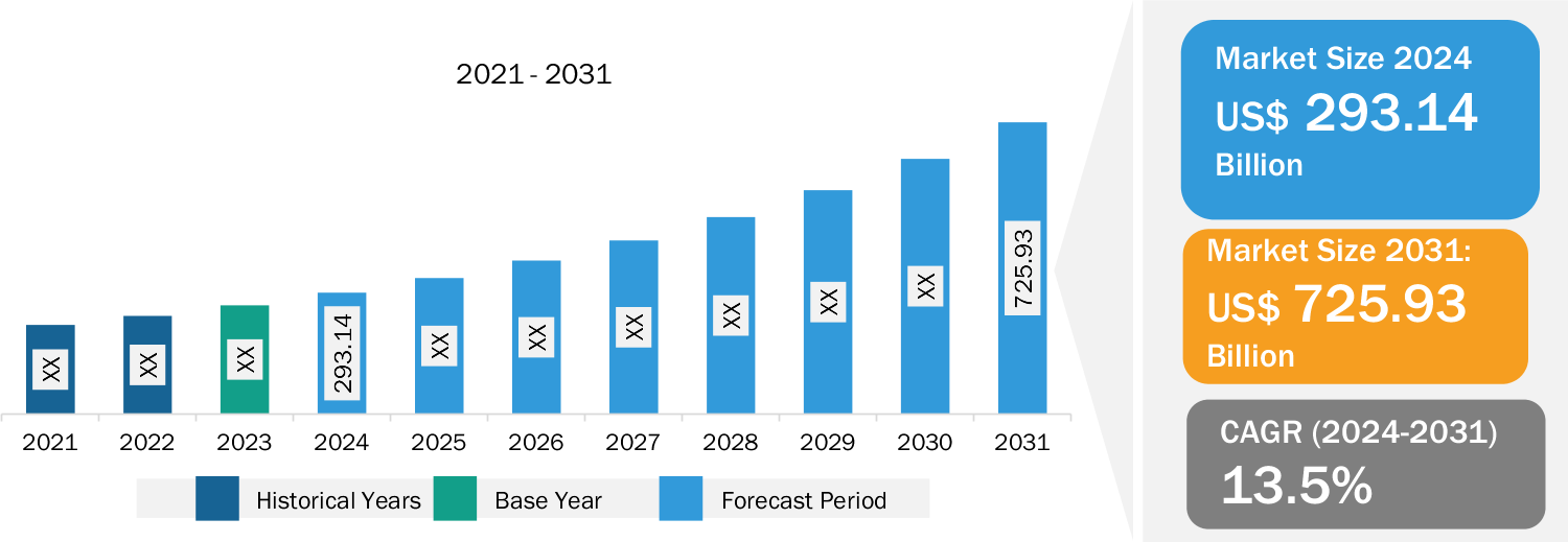 Big Data Analytics Market Growth: The big data analytics market is expected to reach US$ 725.93 billion by 2031 from US 293.14 billion in 2024, at a CAGR of 13.5% during the forecast period. Big data analytics involves the systematic processing and analysis of large, complex datasets (big data) to extract valuable insights. It enables the identification of trends, patterns, and correlations within vast amounts of raw data, assisting analysts in making data-driven decisions. This process empowers organizations to harness the rapidly growing data from diverse sources such as IoT sensors, social media, financial transactions, and smart devices, transforming it into actionable intelligence through advanced analytics. In the early 2000s, advancements in software and hardware allowed businesses to manage large volumes of unstructured data, prompting open-source communities to develop big data frameworks for distributed storage and processing. These frameworks, along with additional tools and libraries, facilitate tasks such as predictive modeling using AI and statistical algorithms; in-depth statistical analysis; scenario simulation via what-if analysis; and processing of structured, semi-structured, and unstructured data. Four primary data analysis methods—descriptive, diagnostic, predictive, and prescriptive—help organizations uncover insights and patterns, enhancing their understanding of market trends, customer preferences, and key business metrics.