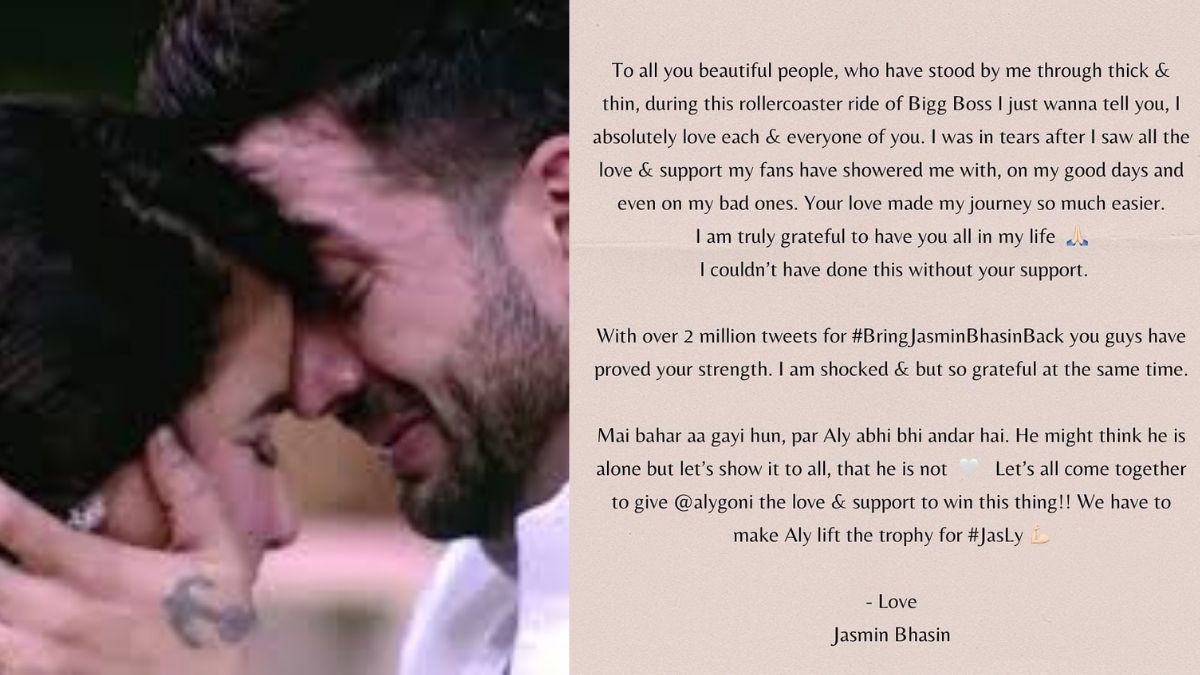She also mentioned about the #BringJasminBhasinBack which crossed 2 million tweets. She further pleaded her fans to support and vote for Aly and shower all the love to him and stated that she wants Aly to lift the trophy.