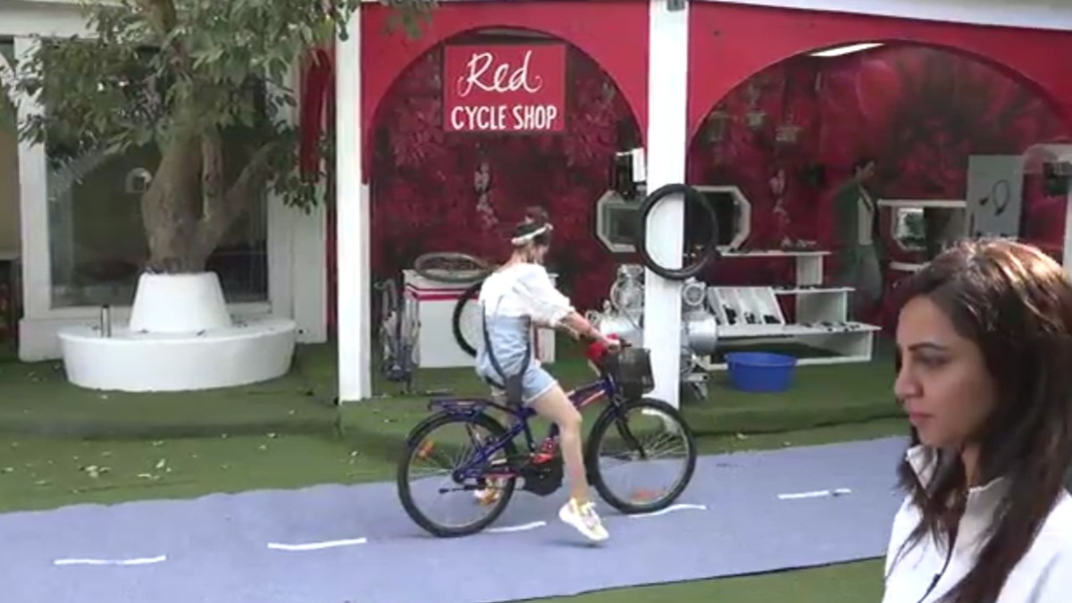 On other hand Rubina wasn’t able to ride the cycle saying, “Yeh kaise chalate hai? Mujhe cycle chalani nai ati.” She uses her legs to move the cycle ahead saying, “Mujhe u-turn ke time bohat dikat hoti hai yaar.” To which her husband Abhinav Shukla comes to rescue and helps her ride one!