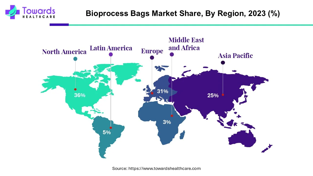 North America dominated the global bioprocess bags market in 2024. The market is expanding due to new product launches and state-of-the-art research and development facilities. The growing research leads to an increasing number of clinical trials to assess the safety and efficacy of several biologics. This increases the need for manufacturing, promoting the use of bioprocess bags. Favorable government policies and investments promote the development of advanced biopharmaceuticals. The growing demand for personalized medicines potentiates the need for novel biological products. The presence of key players also augments the market.