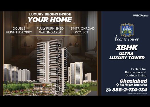 Ghaziabad is fast becoming one of the most sought-after residential destinations in NCR, and Raj Nagar Extension is at the heart of this growth. If you are planning to book a luxury 3 BHK in Ghaziabad, Charms India Iconic Tower offers the perfect blend of modern living, prime location, and premium lifestyle.