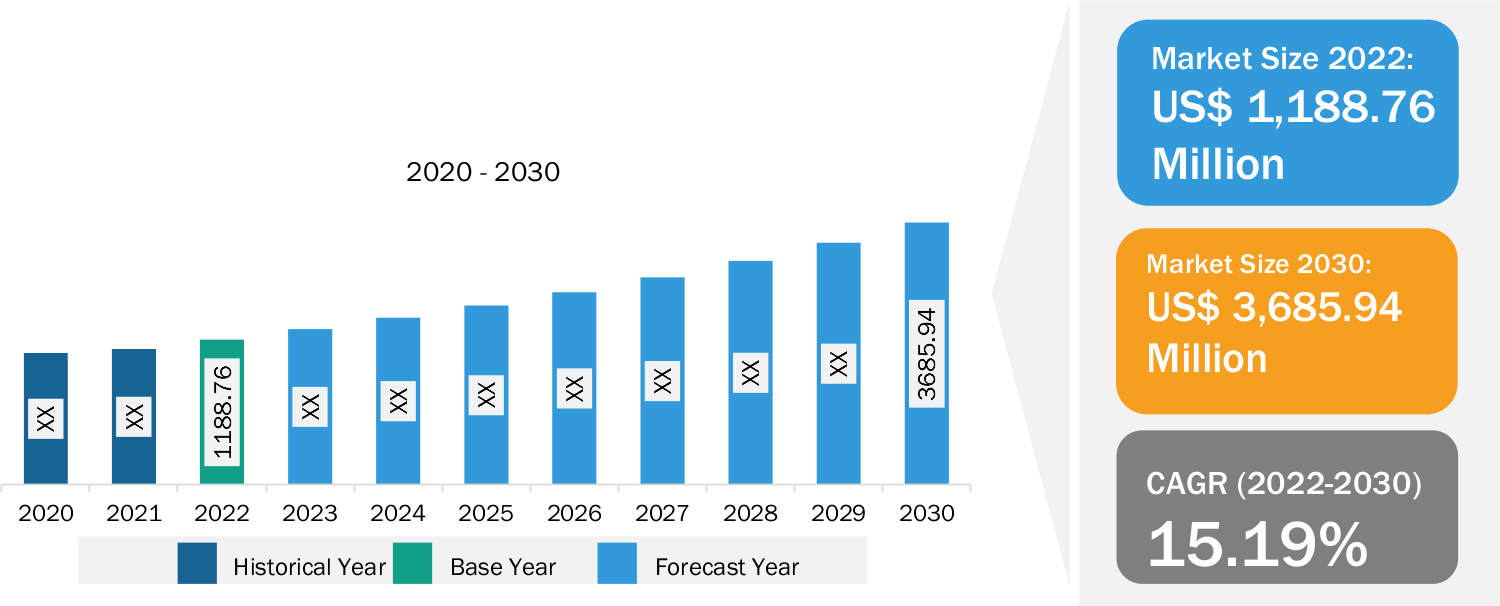 - Market Growth: The breath analyzer market is expected to reach US$ 3,685.94 million by 2030 from US$ 1,188.76 million in 2022; it is anticipated to record a CAGR of 15.19% during the forecast period. Breath analyzers have gained significant recognition as essential, noninvasive tools for detecting a wide range of conditions—including alcohol, narcotics, asthma, tuberculosis (TB), and other respiratory diseases. Their use is also growing in workplace settings that mandate accurate blood alcohol concentration (BAC) measurement. In the healthcare sector, hospitals are increasingly adopting breath analyzers for the diagnosis and monitoring of diseases such as TB and COPD. Moreover, the rise of e-commerce platforms has played a key role in expanding product awareness and availability. Benefits unlocked by these platforms—mainly fast delivery and easy access—have helped manufacturers broaden their distribution networks, making analytical devices more accessible to consumers and professionals alike. Thus, the global breath analyzer market is poised for sustained expansion with a continued rise in both clinical and commercial applications of breath analyzers.
