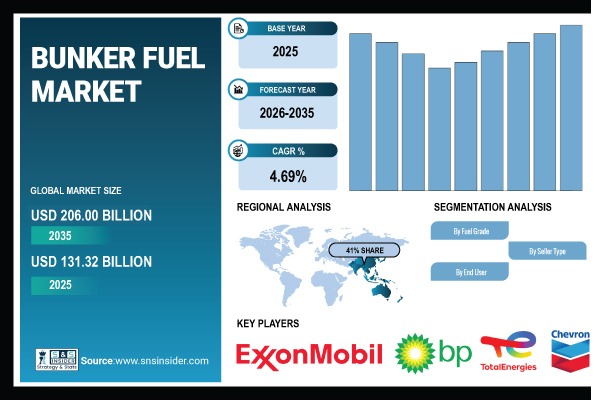 According to the SNS Insider, “The Bunker Fuel Market Size was valued at USD 131.32 billion in 2025 and is expected to reach USD 206.00 billion by 2035, growing at a CAGR of 4.69% over 2026-2035.”
