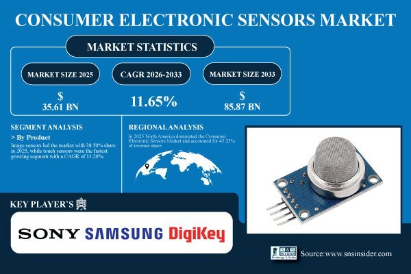 Consumer Electronic Sensors Market Size to Hit USD 85.87 Billion by 2033 Driven by Rising Smart Device Adoption and Demand for Multi-Functional Sensors | SNS Insider