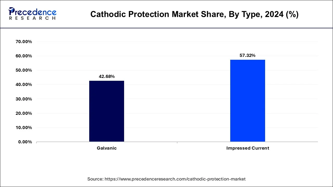 - The impressed current segment accounted for the biggest share of 57.32% in 2024.