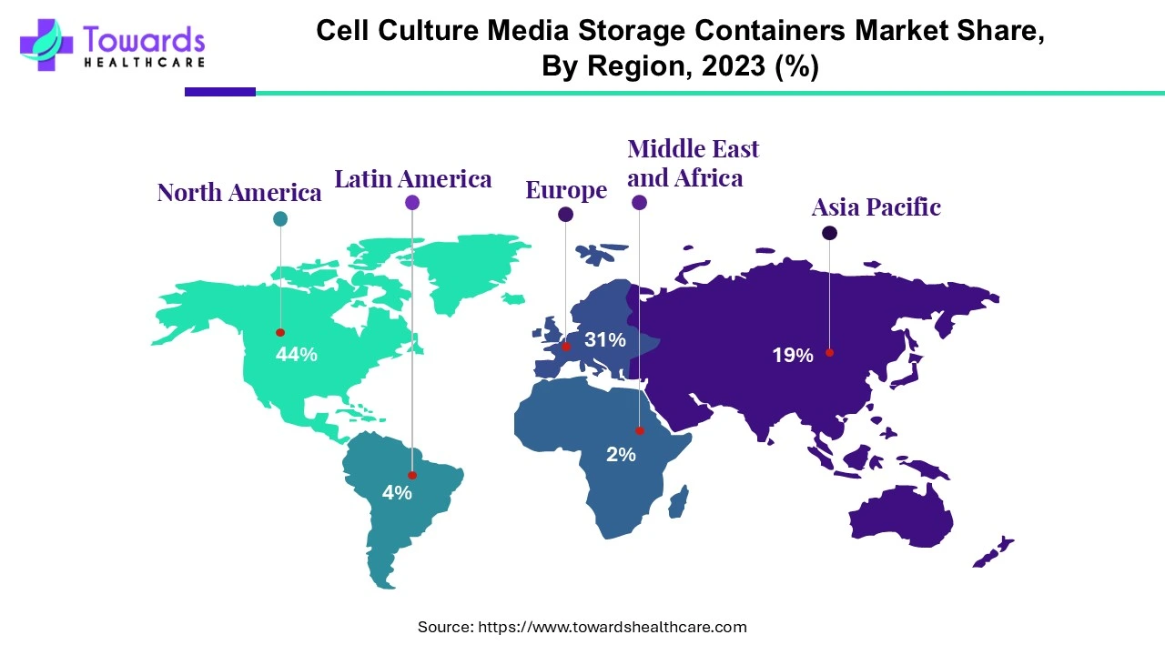 By end-use, the CROs & CMOs segment is anticipated to grow at the fastest rate during the forecast period. CROs are experts in carrying out clinical trials and research studies, and they need safe storage options to keep biological samples viable during the testing procedures. Contrarily, CMOs concentrate on producing medications and biotechnology goods for pharmaceutical businesses. They depend on cell culture media storage containers to effectively store vast amounts of cell cultures, guaranteeing the uniformity and caliber of the final goods.