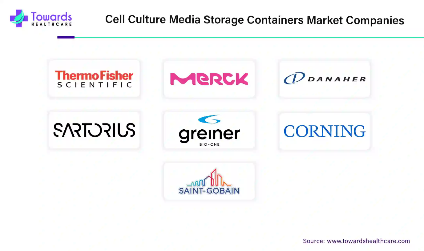 Cell culture media storage is required heavily in pharmaceuticals and biotechnology. Various companies are continuously focusing on developing better containers while keeping sustainability and environmental protection in mind; some of the top companies in the market include Thermo Fisher Scientific Inc., Merck KGaA, Danaher, Sartorius AG, Greiner Bio-One International GmbH, Corning Incorporated, VWR International, LLC., Saint Gobain, Diagnocine, and HiMedia Laboratories.