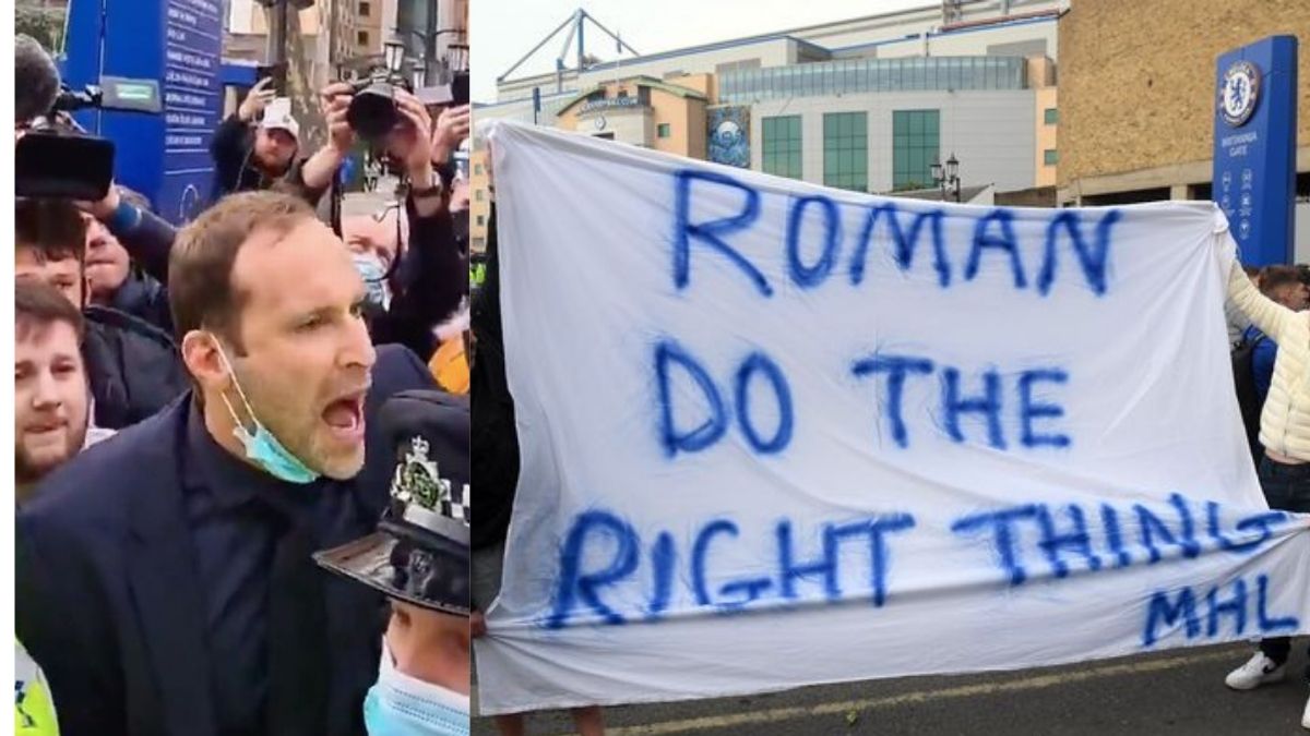 Sporting director Petr Cech was pictured addressing the disgruntled fans who came in the masses with the club now set to abandon their plans to join the league, as first reported by Dan Roan.
