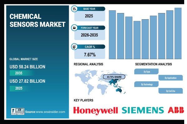 According to the SNS Insider, “The Chemical Sensors Market Size was valued at USD 27.82 Billion in 2025 and is projected to reach USD 58.24 Billion by 2035, growing at a CAGR of 7.67% during 2026–2035.”