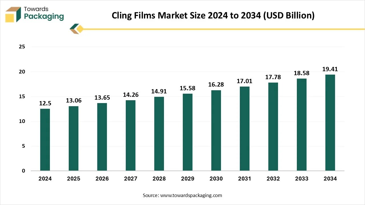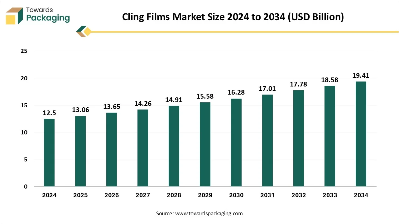According to a recent analysis by Towards Packaging, the global cling film market is projected to expand from USD 13.65 billion in 2026 to USD 19.41 billion by 2034, recording a CAGR of 12.5% between 2025 and 2034.