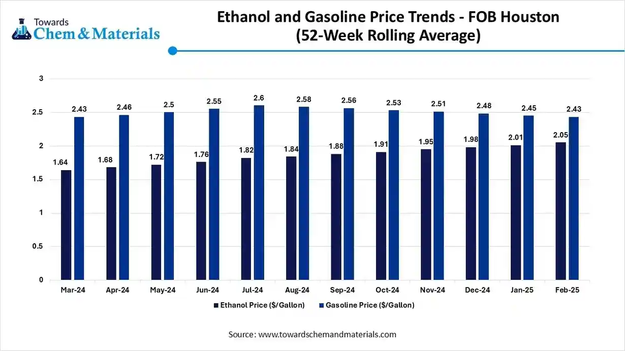 Driven by stringent environmental regulations and government blending mandates, ethanol is widely used as a cleaner-burning alternative to traditional gasoline. This trend helps countries reduce greenhouse gas emissions, improve air quality, and enhance energy security by decreasing reliance on imported crude oil.