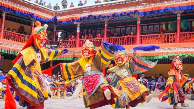 Hemis is a two-day holy festival held in honour of Lord Padmasambhava, a spiritual leader and father of Tibet Tantric Buddhism, at Hemis Monastery in Ladakh. The Cham dance is done by the monastery’s monks to the accompaniment of typical cymbals, miniature trumpets, and big pan-drums. For the shows, the performing monks don extravagant costumes and masks. It is celebrated in the month of June and July.