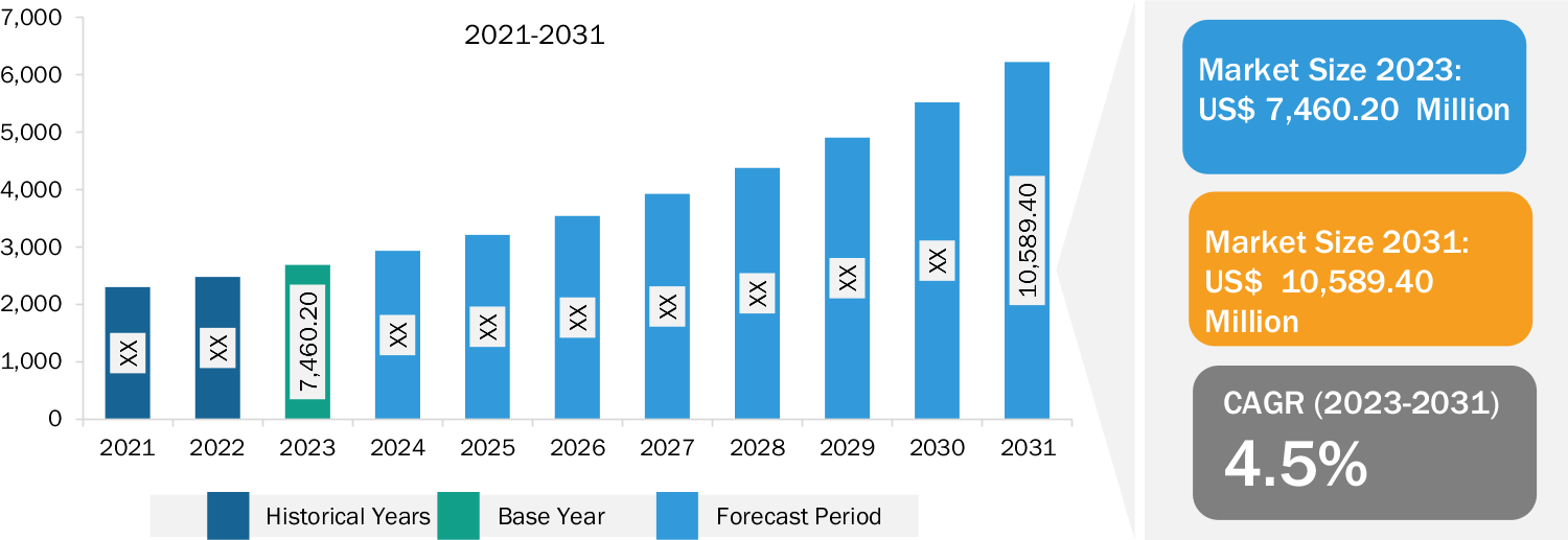 Flanges Market Growth: The Flanges market was valued at US$ 7,460.20 million in 2023 and it is anticipated to register a CAGR of 4.5% during the forecast period. There is an increase in the development of new oil and gas rigs and the discovery of new offshore oil field areas across the world. Moreover, investments in oil and gas pipeline infrastructure development and refurbishment or reconstruction of existing oil and gas rigs have increased. For instance, in October 2022, the Italian government announced plans to increase its gas production from the current production capacity. This plan also includes the building and construction of new offshore gas rigs across the country. In May 2023, the Chinese government announced that it had completed the building and construction of a new 12,000-ton offshore drilling rig. In addition, in 2022, National Grid Gas Plc (UK) announced the acquisition of new land and rights required for the development and operation of a new 9 km gas pipeline between Wormington and Honeybourne. A new 2 km section of gas pipeline network in Churchover is anticipated to facilitate pressure uprating of the already existing gas pipeline between Felindre and Cilfrew and Three Cocks. Therefore, the rising investment in the development of oil and gas pipeline infrastructure worldwide is driving the demand for flanges in this pipeline network expansion.