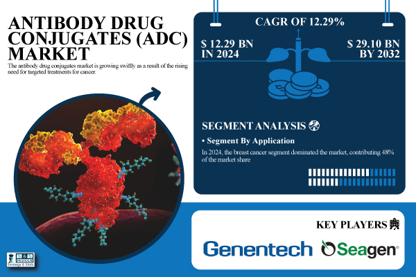 The Antibody Drug Conjugates Market size was valued at USD 12.29 billion in 2024 and is expected to reach USD 29.10 billion by 2032, growing at a CAGR of 12.29% During 2025-2032. The antibody drug conjugates market is expanding quickly due to the increased demand for cancer treatments that are specifically targeted. Combining the potency of cytotoxic medications with the specificity of monoclonal antibodies, ADCs are becoming more and more well-liked for their capacity to deliver precisely targeted therapeutics to cancer cells while minimizing damage to healthy tissues.