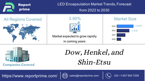LED encapsulation involves protecting LED chips by sealing them in a protective material, crucial for durability and performance. Market research reports offer insights into LED Encapsulation Market conditions, highlighting trends, challenges, and opportunities.The LED Encapsulation Market is expected to grow from USD 2.10 Billion in 2022 to USD 2.80 Billion by 2030, at a CAGR of 3.90% during the forecast period.