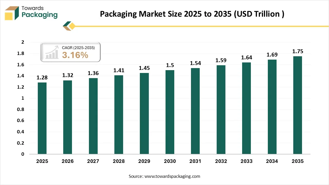 The global packaging market is projected to grow from USD 1.32 trillion in 2026 to USD 1.75 trillion by 2035, at a CAGR of 3.16%. Growth is primarily fueled by the rising demand for sustainable, biodegradable, and reusable packaging solutions, particularly across the food & beverages and healthcare sectors.