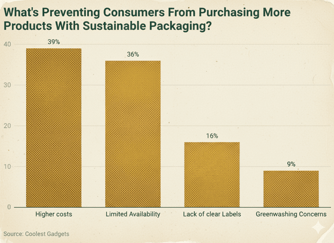 While sustainability awareness is high, practical barriers persist. The top reasons consumers avoid eco-friendly packaging include:
