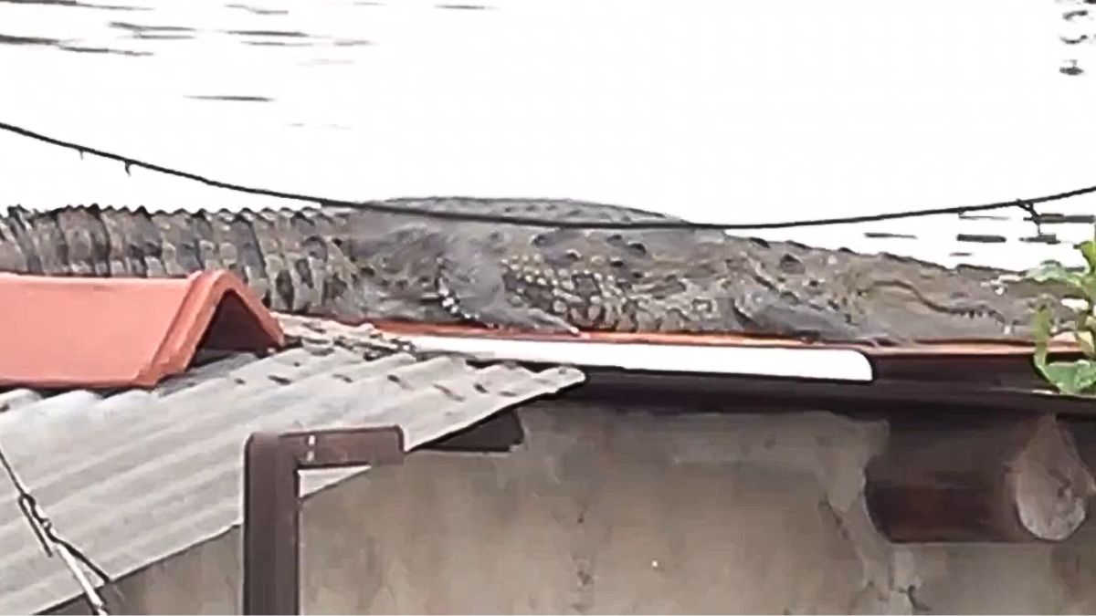 Check the video of a crocodile lounging on the roof of Akota stadium neighbourhood