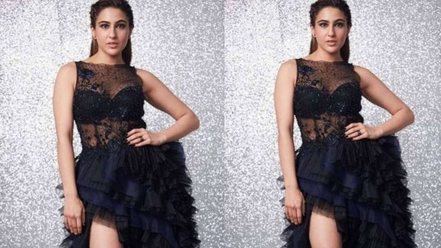 Sara Ali Khan definitely made heads turn after she wore a see through black ruffled sequined gown, accentuating the drama with her slicked back hair and smokey eye. She finished the look with scrappy black heels.