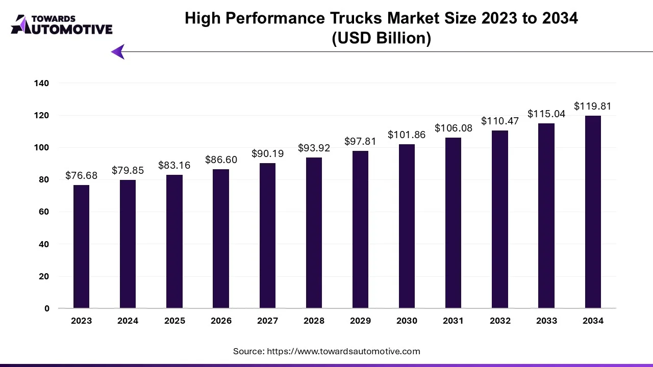 According to Towards Automotive consultants, the global high performance trucks market is projected to reach approximately USD 119.81 billion by 2034, increasing from USD 83.16 billion in 2025, at a CAGR of 4.14% during the forecast period 2025 to 2034.
