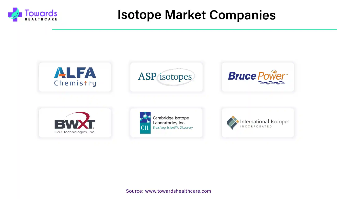 The global isotope market mainly consists of an atom with the same number of protons as another atom of the same element, but a different number of neutrons. A wider application of these isotopes in medical and healthcare areas gives rise to radiotherapy, which utilizes isotopes to target and destroy cancerous cells, with Cobalt-60 being applied in therapies for brain and breast cancer. Alongside, the emergence of stable isotopes, particularly Carbon-13, is widely employed in spectroscopy to elucidate molecular structures and in mass spectrometry to analyze isotope ratios in geological processes. Recently, Bruce Power in Canada has been innovating the production of significant medical isotopes, like Lutetium-177 (Lu-177), for cancer therapy.