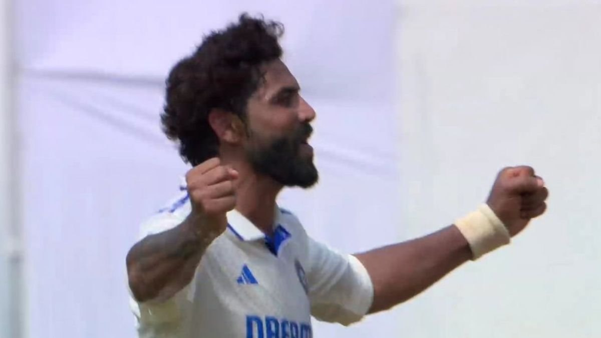 Barely had the cheers settled when Jadeja struck again with a dream delivery to Blundell. This time, the ball drifted in toward leg-stump and spun sharply to hit the off-stump, beating Blundell’s defensive attempt. The delivery left Blundell in disbelief and the Indian fielders jubilant, while a puff of dust rose dramatically from the pitch.