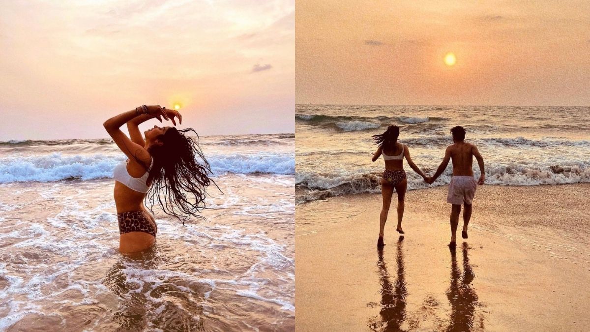 In the images, we see Janhvi Kapoor emerging from the sea in a classic pose that has been copied numerous times by Instagram models. The other images show her relaxing on a rock, staring out at the sunset and running into the sea – hand in hand – with a friend.  “Maybe half the beauty of every blurred sunset is that it is fleeting,” she wrote in the caption.