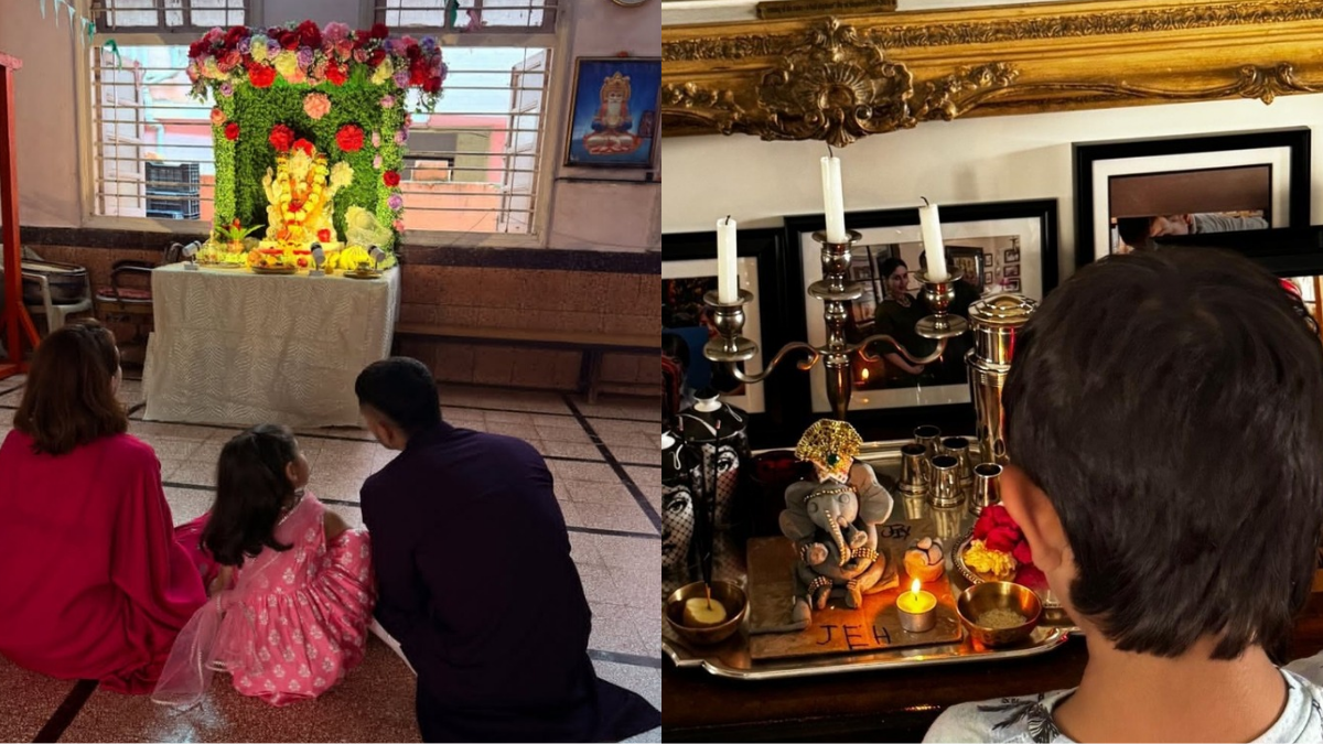Adding to the festive spirit, Kareena’s sister-in-law Soha Ali Khan also marked the occasion with her family. She shared photos with husband Kunal Kemmu and daughter Inaaya Naumi Kemmu as they prayed before their Ganesh idol. Dressed in ethnic wear, the family was seen sitting near the altar, offering prayers. Soha simply captioned her post, “Ganapati Bappa Moriya! .”