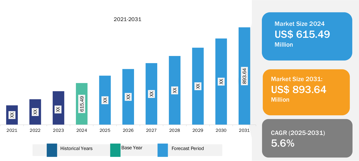 The KVM Switches market was valued at US$ 615.49 Million in 2024 and is projected to reach US$ 893.64 Million by 2031; it is expected to register a CAGR of 5.6% during 2025–2031.