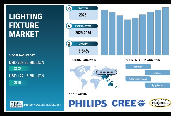 According to the SNS Insider, “The Lighting Fixture Market Size was valued at USD 122.16 Billion in 2025 and is projected to reach USD 209.30 Billion by 2035, growing at a CAGR of 5.54% during 2026–2035.”