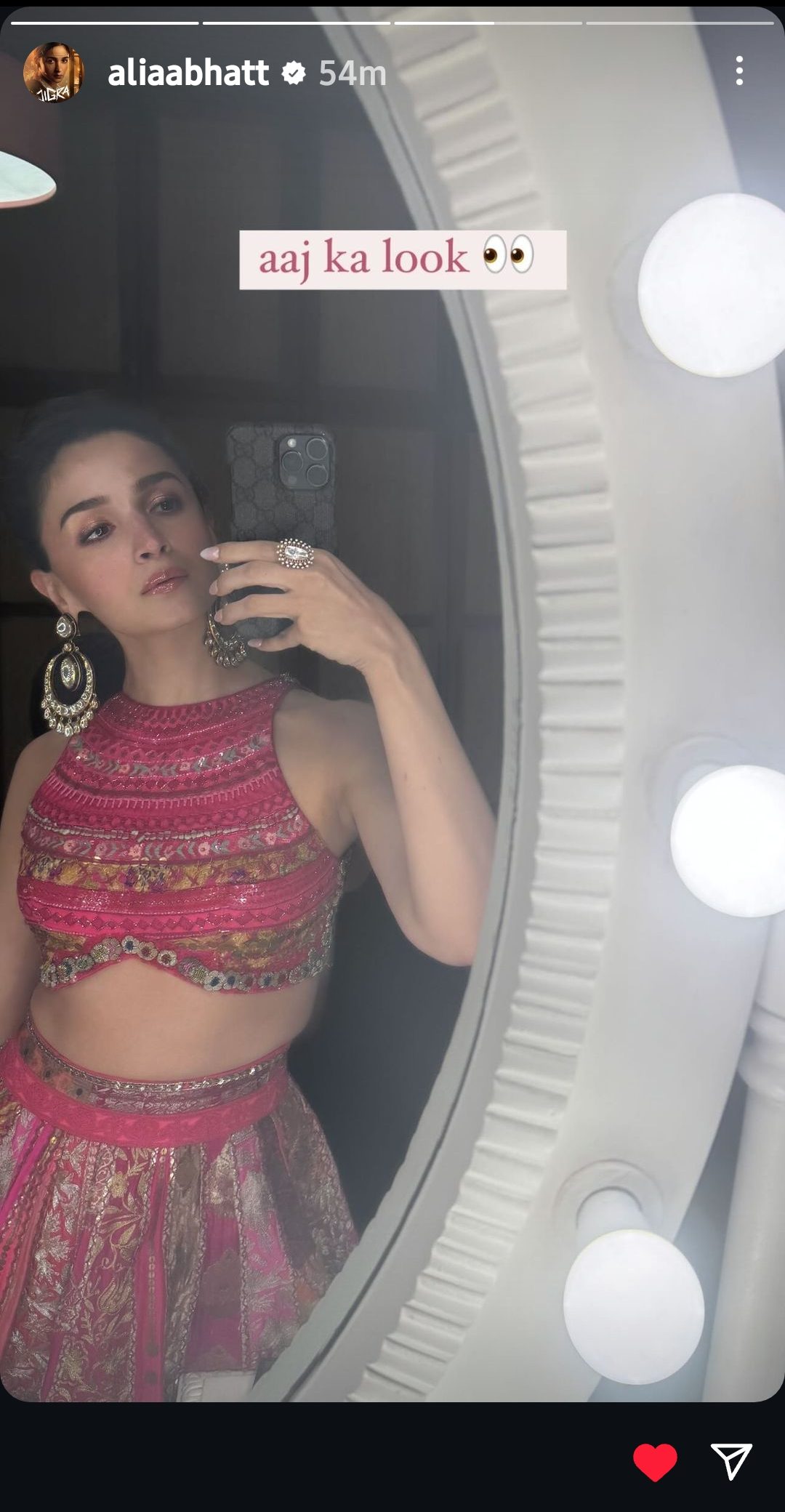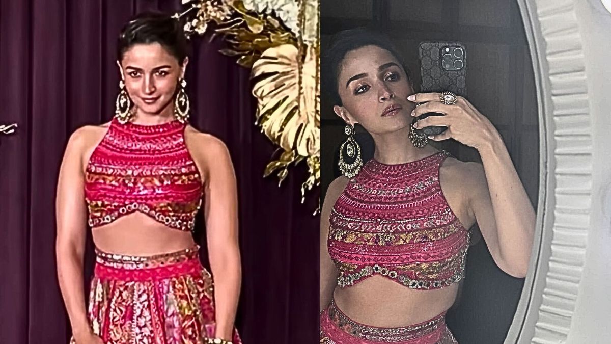 In an Instagram reel, Alia Bhatt can be seen posing at Manish Malhotra’s Diwali party. Alia wore the same Mehendi attire from her wedding to the festivities, as shown in the video. The actress looks stunning in her pink lehenga, flashing her million-dollar smile at the occasion. She complemented her attire with a big pair of earrings and wore her hair pulled back.