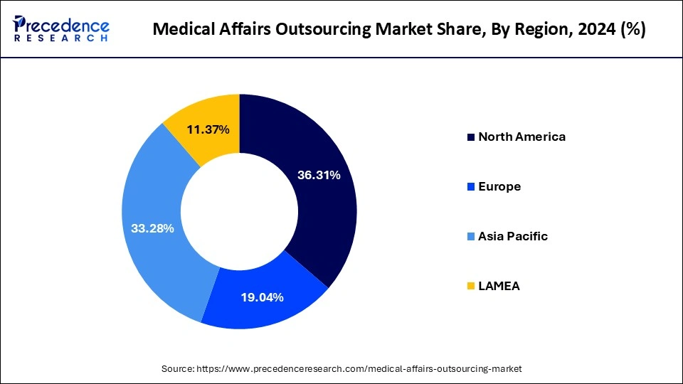 North America held the largest share of the medical affairs outsourcing market in 2024, driven by the factors such as vigorous FDA supervisors, existence of international life sciences, pharmaceutical giants, and availability of talent pool increasing awareness amongst the consumers. The market is characterized by various factors including expertise and cost benefits in medical affairs, catering to expansion of innovative products in the market.